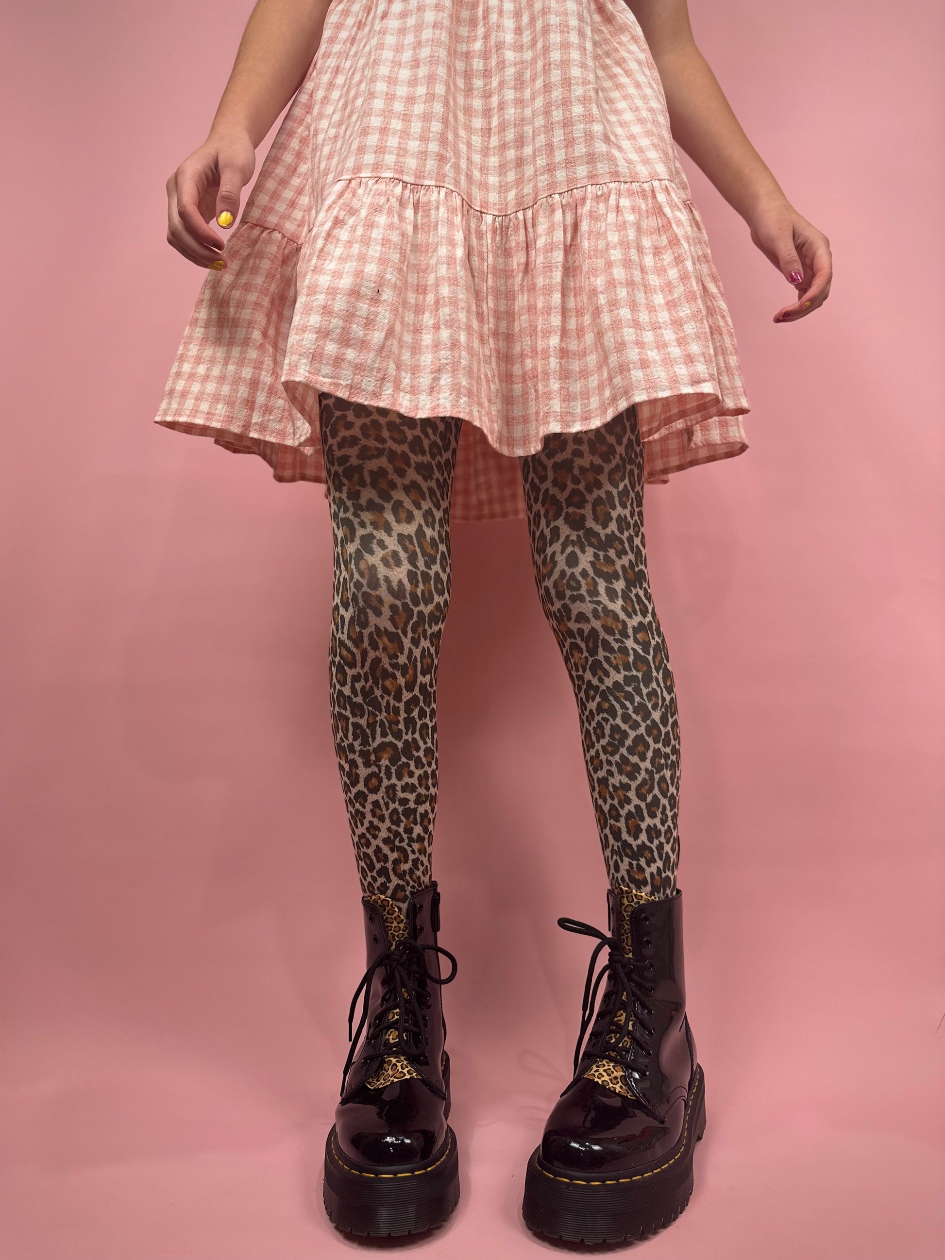 Unleash your wild side with the Leopard Print Tights, the perfect statement piece for adding a touch of boldness to your wardrobe. Featuring an all-over leopard pattern, these tights are both fierce and versatile, making them a must-have for anyone looking to elevate their look with a hint of attitude. The soft, stretchy fabric ensures a comfortable fit that moves with you, allowing you to show off your fearless fashion sense without sacrificing comfort.